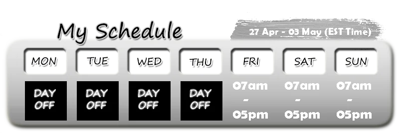 Демонстрація геніталій, Вихваляння, Спанкінг, Стриптиз, Фут-фетиш, Приниження, Мастурбація, Олійне шоу, Оцінювання прутня, Інструкція з поїдання сперми, Камшот, Еротичні танці, Еякуляція, Жорсткий секс, Оргазм, Інструкція з мастурбування, Помпа, Передеякулят, Приниження крихітного пеніса, Рольові ігри